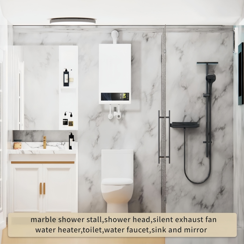 The shower area is independent and prefabricated. It includes a marble shower stall with a showerhead and other standard accessories, as well as a silent exhaust fan. Provide you a privacy and comfortable shower space.