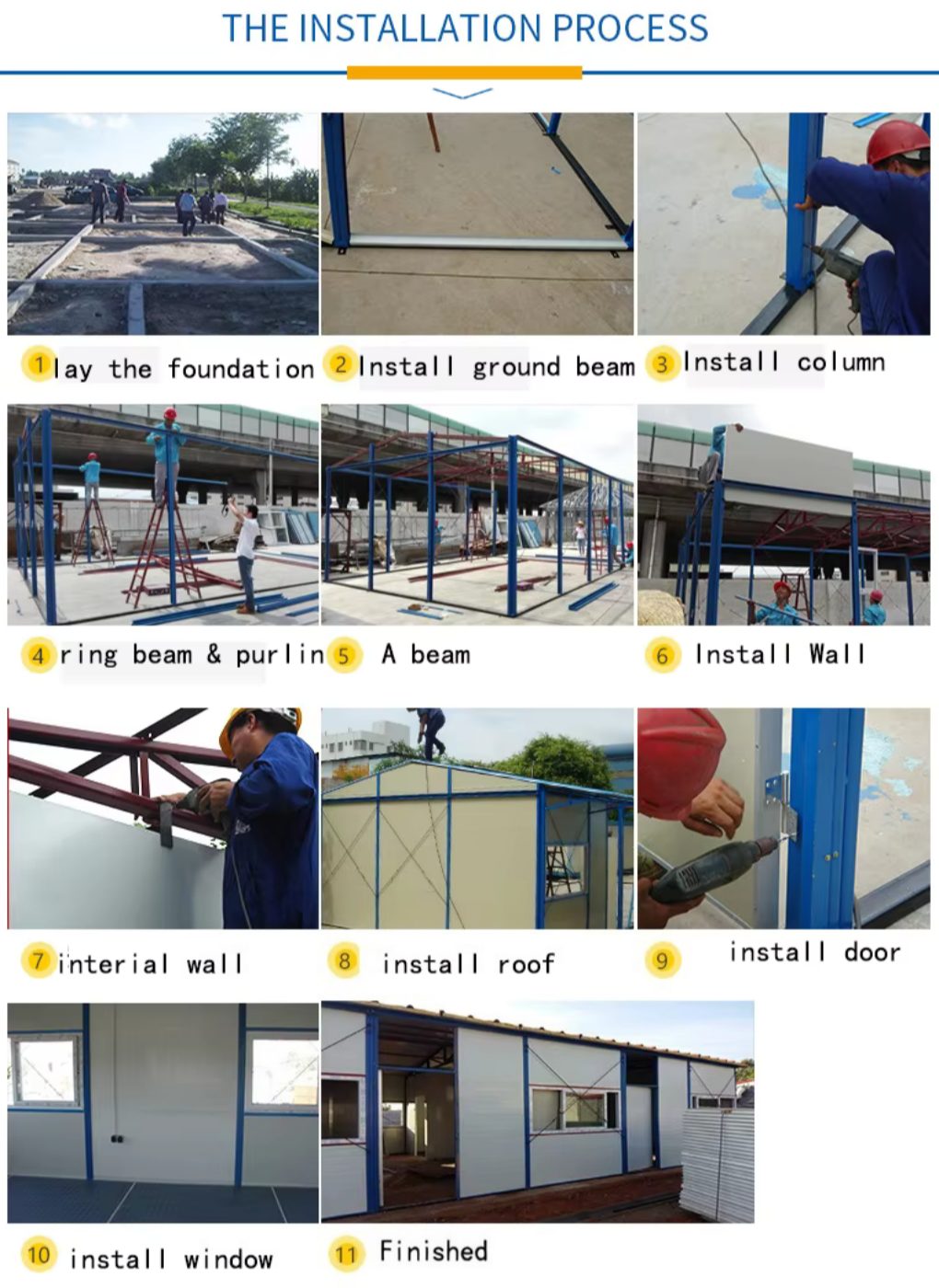 (3) Owing to rational design, the transportation of housed is convenient and cost saving, and houses can be easily assembled and disassembled for severval times without damage, not bring out building debris.